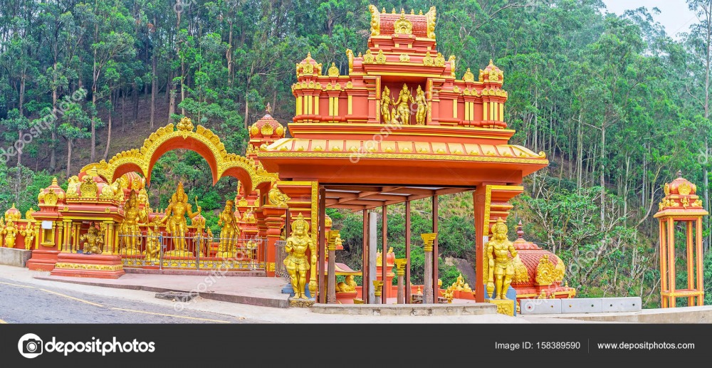 Nuwara Eliya - Sita Amman Kovil According to the Indian Epic Ramayanaya and the legends, the area where Sita, Queen of King Rama of Ayodhya in India, who was abducted by Ravana the King of Sri Lanka, was kept in hiding and the area she roamed is in the hill country of Sri Lanka. In Nuwara Eliya is the "Sita Amman Kovil" - a quaint little Kovil, with the statues of Rama, Sita, Hanuman, Lakshmana and Sugriva. This is supposed to be the only Kovil in the entire World dedicated to Sita. The stream by the side of the Temple is a famous spot where she went for bathing. Out of the 13 Palaces of Ravana, two caves in the Strict Nature Reserve of Hakgala, starting from Temple land and the cave at Ella close to the waterfall "Ravana-Ella" (1080ft. high) where Ravana went for bathing, are supposed to be three Palaces Sita was kept in hiding. The Hakgala Gardens may be the "Ashok Vanaya" of Ramayana where Rhododendrons identified as Ashok Flowers in the epic, are found in bloom throughout the year.